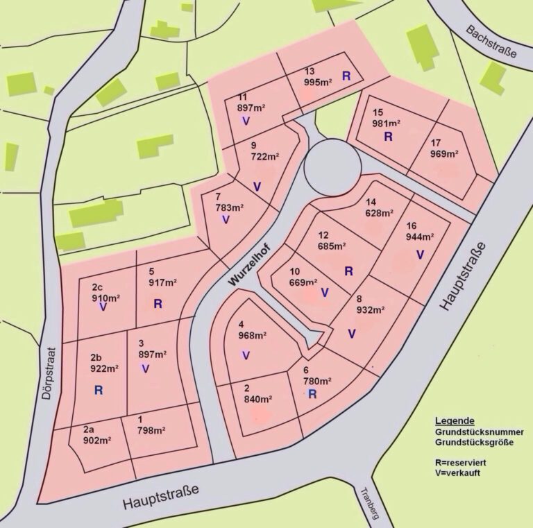 Das neue Baugebiet „Wurzelhof“ in Taarstedt bietet Platz für 20 Grundstücke und zeichnet sich besonders als attraktiver Wohnort für junge Menschen und Familien aus. Die Grundstücke verfügen über eine Größe von ca. 628 m² bis 970 m². Eine Bebauung mit Ein- und Zweifamilienhäusern ist möglich.